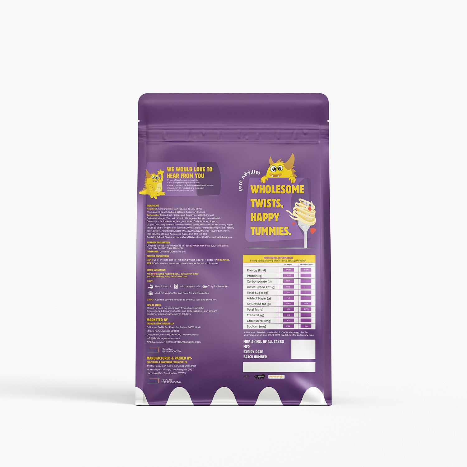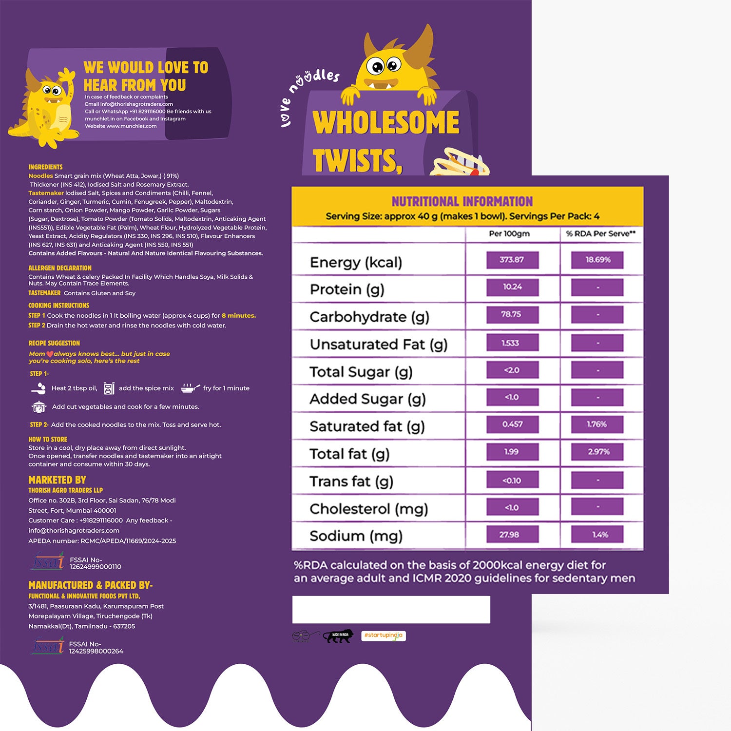 Craving instant noodles but want something healthier? Try our Jowar Noodles — a fiber-rich, high-protein snack made with a wholesome blend of Jowar (32%) and Wheat Atta (54%), combined with a delicious 15g masala mix full of Indian spices.