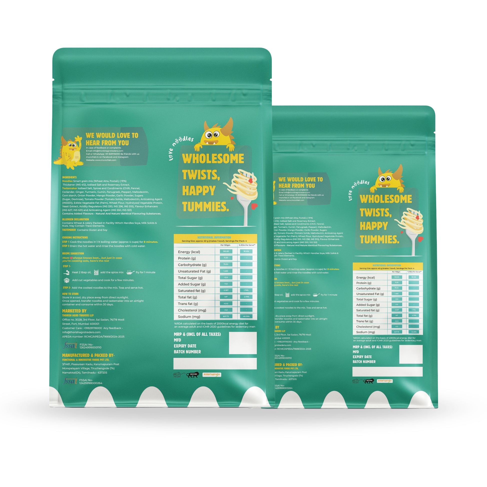 Made with 32% foxtail millet and 59% wheat atta, these noodles are rich in fiber, easy to digest, and a healthier option for kids and families. With a simple ingredient mix and natural rosemary extract, they’re a smart choice for everyday meals—perfect for quick dinners, lunchboxes, or evening snacks.