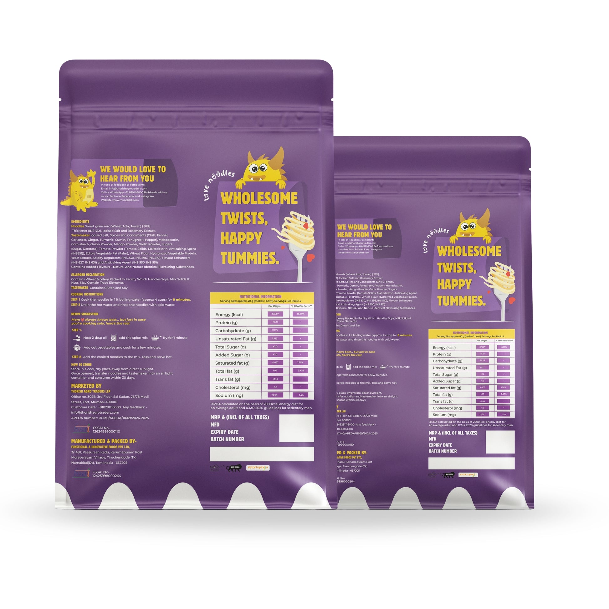 Craving instant noodles but want something healthier? Try our Jowar Noodles — a fiber-rich, high-protein snack made with a wholesome blend of Jowar (32%) and Wheat Atta (54%), combined with a delicious 15g masala mix full of Indian spices.
