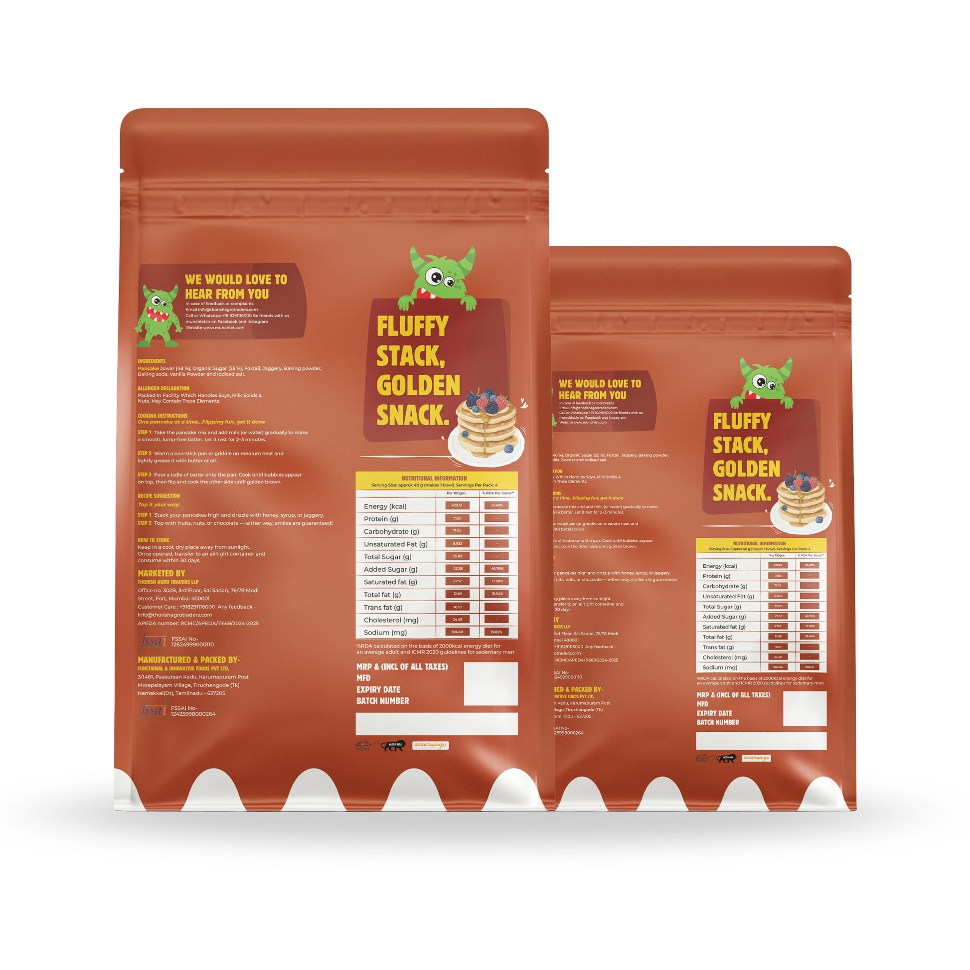 Vanilla Pancake Mix brings together the natural goodness of millets and the delightful aroma of vanilla to create fluffy, healthy, and tasty pancakes. With jowar and foxtail as the base, sweetened naturally with organic sugar and jaggery, this mix is perfect for a wholesome breakfast or a quick snack. Soft, light, and flavored with a gentle vanilla essence, it’s a treat that kids will love and parents will feel good about serving.