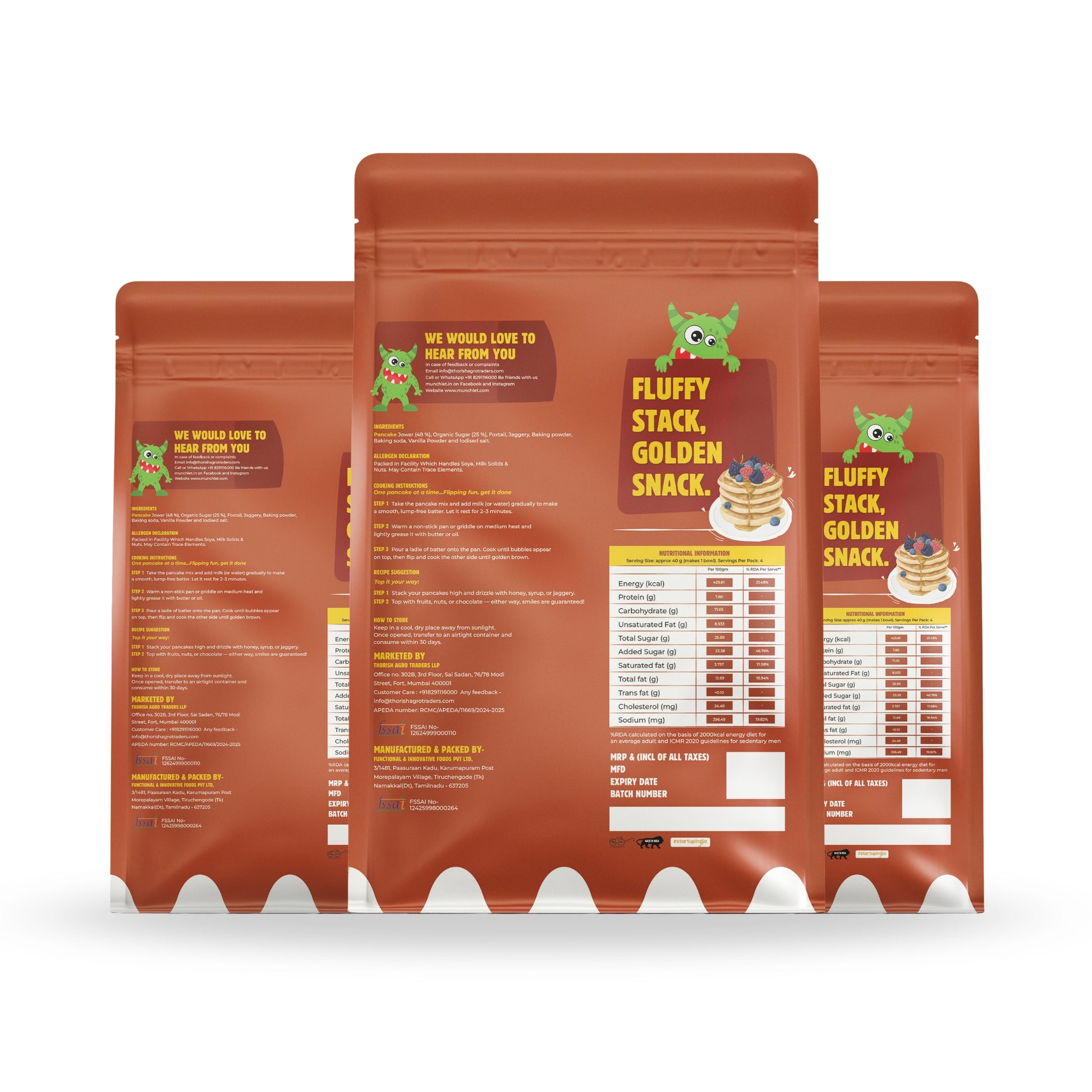 Vanilla Pancake Mix brings together the natural goodness of millets and the delightful aroma of vanilla to create fluffy, healthy, and tasty pancakes. With jowar and foxtail as the base, sweetened naturally with organic sugar and jaggery, this mix is perfect for a wholesome breakfast or a quick snack. Soft, light, and flavored with a gentle vanilla essence, it’s a treat that kids will love and parents will feel good about serving.